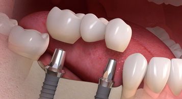 Occasionally a patient is missing several teeth, but still has healthy gums and surrounding teeth. In this case an implant-supported bridge can replace them. Two fixtures are implanted and the bridge is attached, leaving other natural teeth intact. In addition to looking and functioning like natural teeth, an implant-supported bridge replaces teeth without support from adjacent natural teeth.