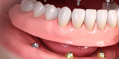 If you are missing all of your teeth, an implant-supported full bridge or full denture is an excellent solution. Four implants will be placed and then a full arch of teeth will be attached.